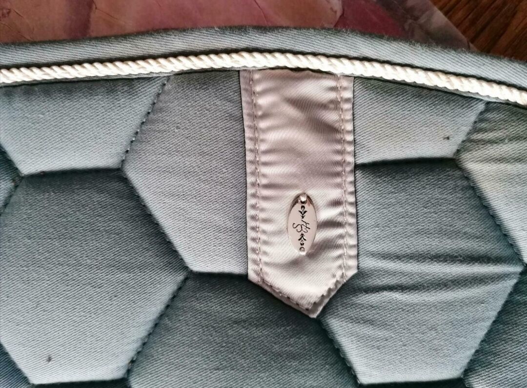 Light bluew/turquoise saddle pad/saddle cloth from Krämer - Lay 3x on the pony with lunge strap, so never ridden with