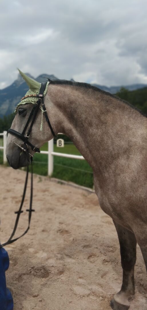 Not a beginner's horse - but knows how to groom and lead children and is also very well behaved! Top farrier and loading. Started circus lessons Knows and likes cavalleti and gymnastic jumps. In the arena he is intelligent, pleasant in temperament and rather on the lazy side, yet sensitive in the mouth and sensitive to the seat. Correct contact not yet constant, but brings the great natural collection of the Lippizaner with him (simple changes by nature, lateral movements started).
