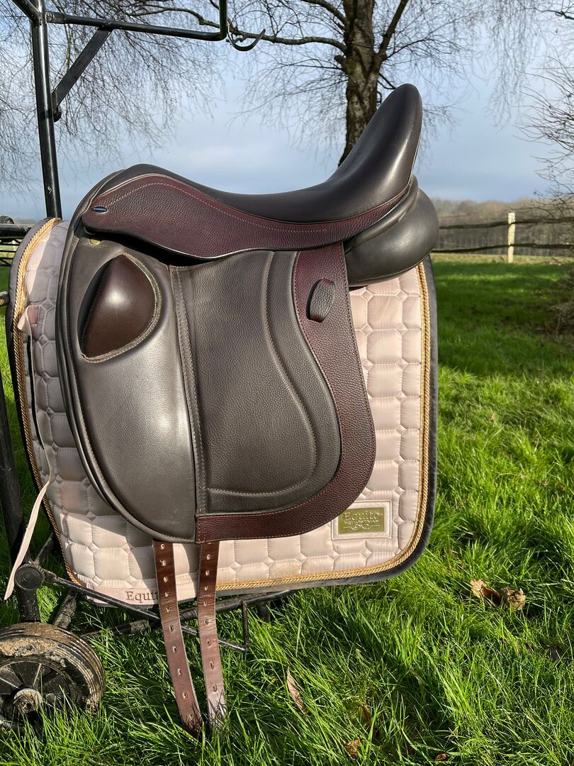 17” tree and panel on a 17.5” seat Suitable for broad horses only. Immaculate condition, not twisted. Stored with the saddle cover in a dry place. The saddle is 18 months old. Hardly used.