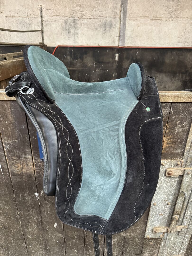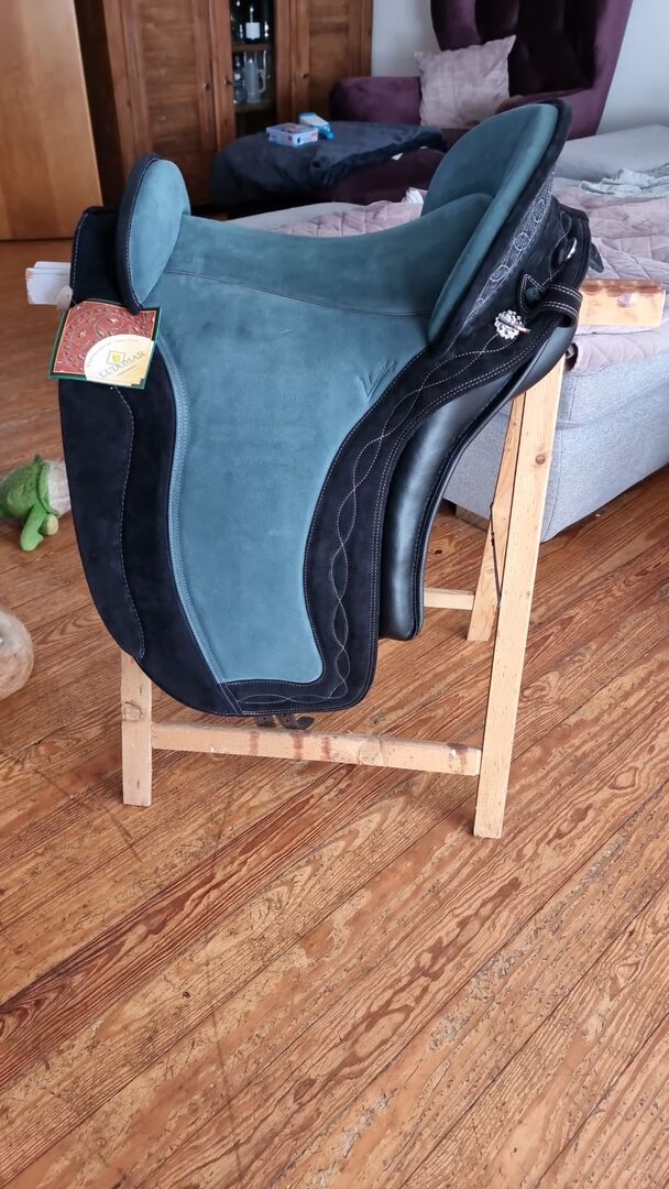 The saddle is from 2022 and I bought it together with the horse. For personal reasons, the previous owner was never able to use the saddle and I was practically the first to use it (since December 2024). However, the horse's conformation has changed, so the saddle could be adjusted, but there would be too much padding in it for me. I have therefore decided to give it away. It is well suited to slightly wider, round horses.