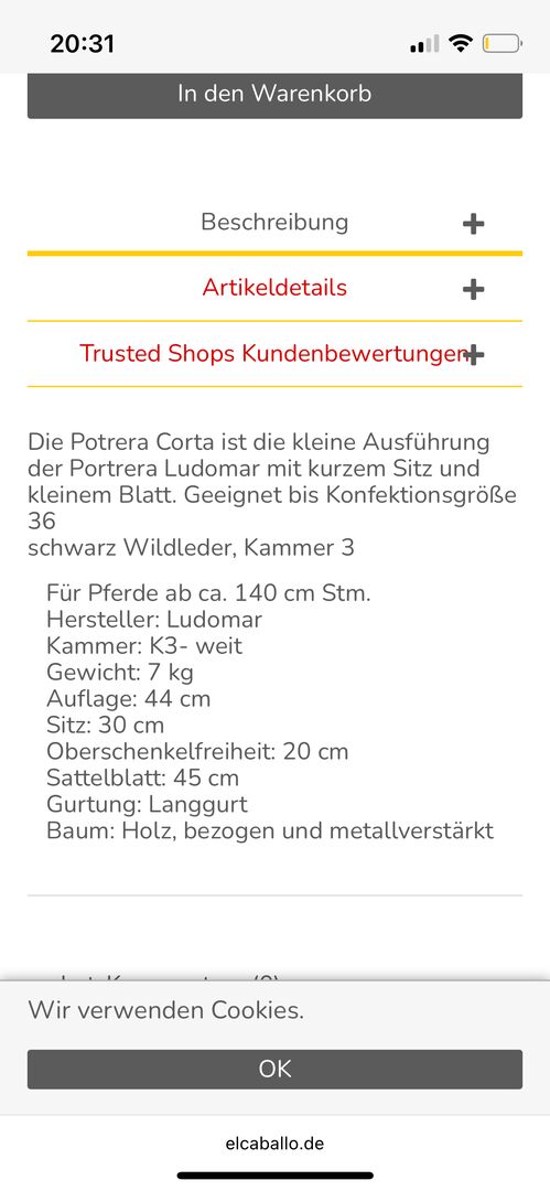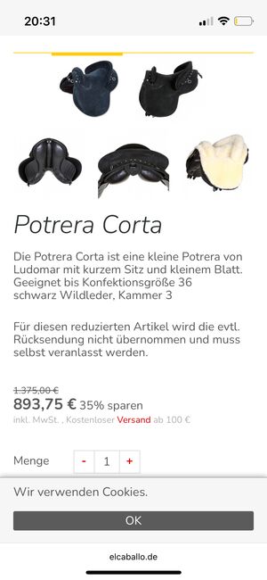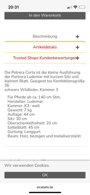 Hi Susanne , I am interested in your ad 'Ludomar kurzer Sattel / Ludomar Potrera Corta'. Please contact me!
