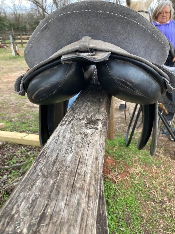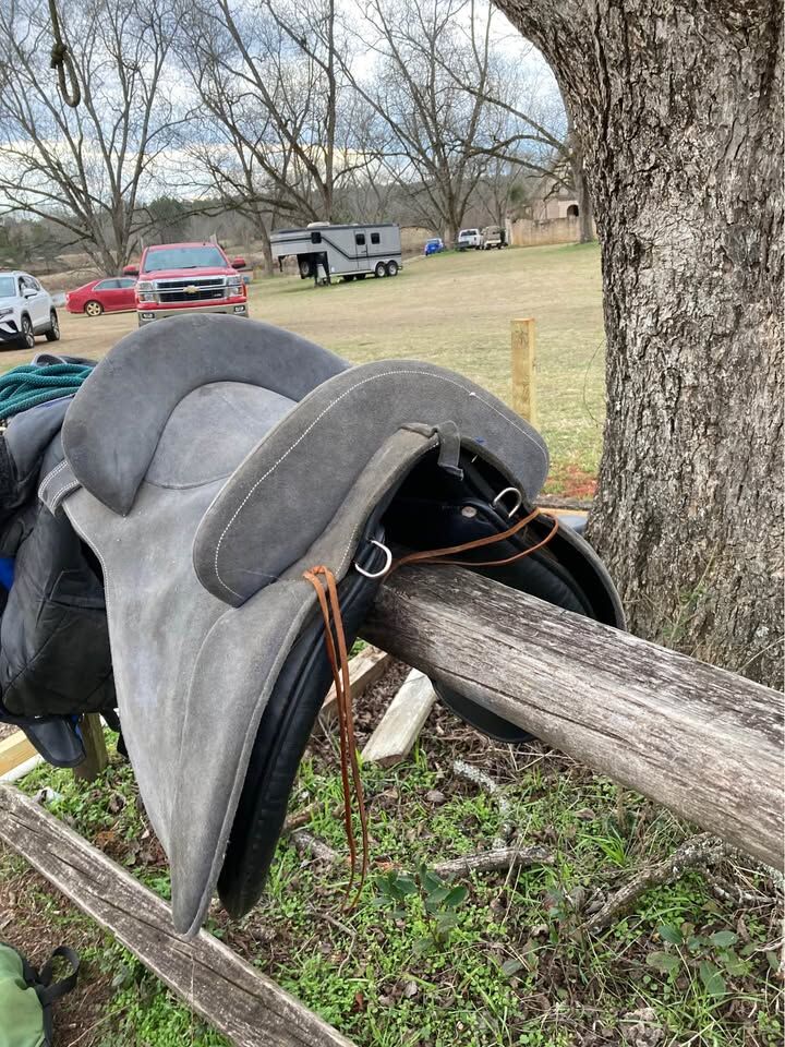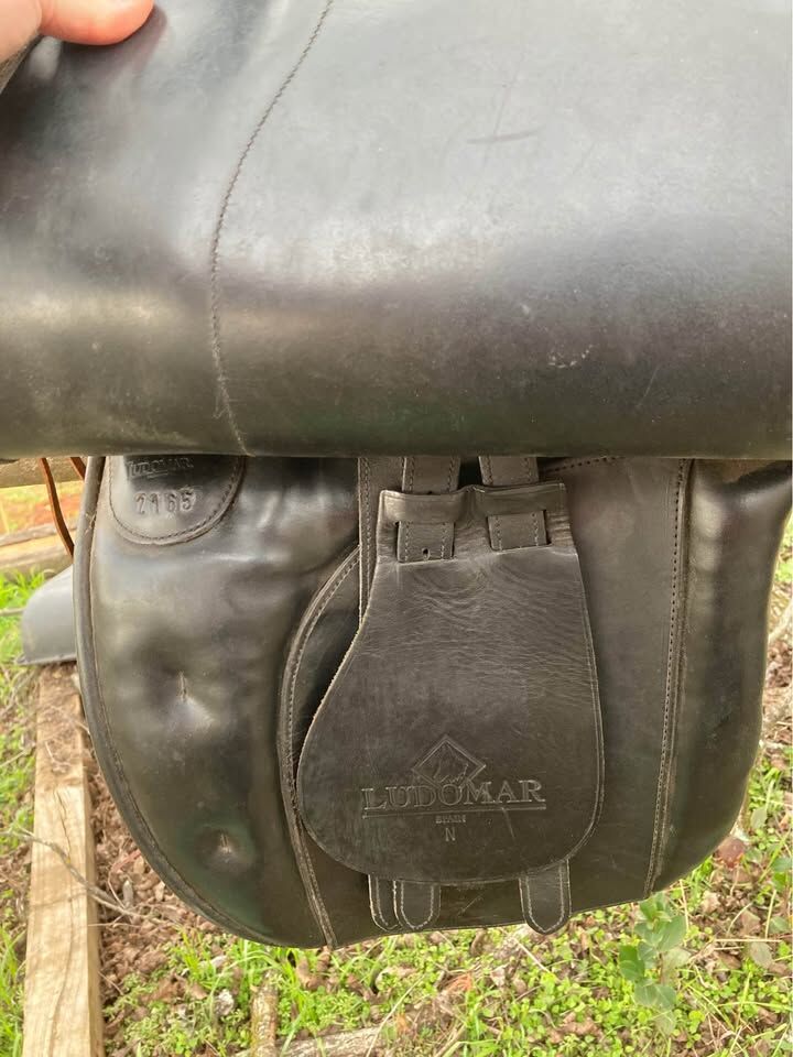 Lightly used Ludomar baroque working equitation saddle. Grey suede top, black leather underneath. In great condition. Narrow tree.