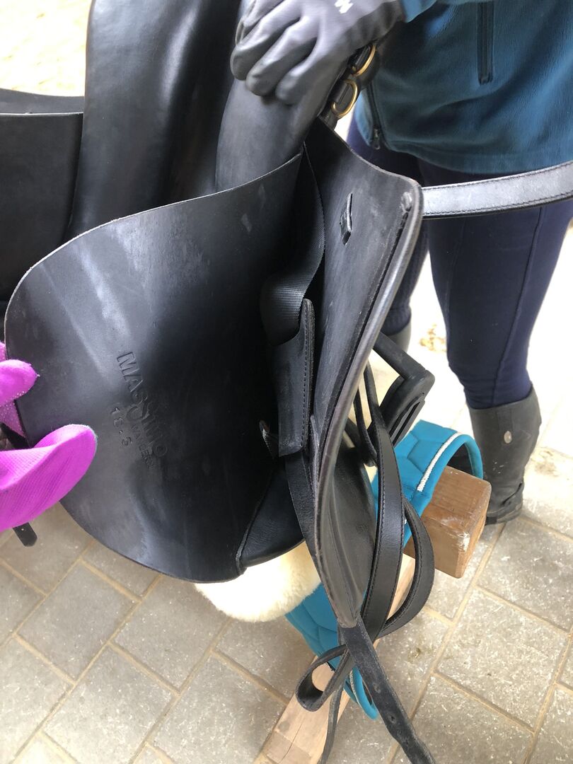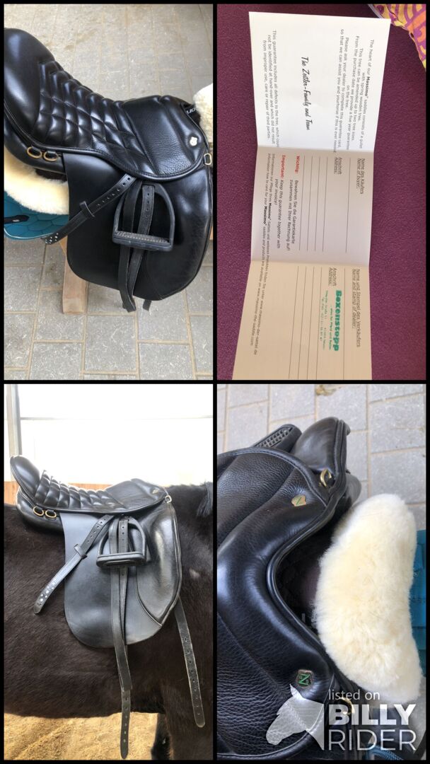 Massimo Trail Riding Saddle FK - I sell a used Massimo trail riding saddle with normal signs of use: - bought new in 07/2018 at the price of 1.810,- Euro (invoice available). - new now 2420€ - FK (French panels) - Warranty card from the manufacturer so still valid until 07/2023. - KW 35 (can be adjusted by 2 sizes according to the manufacturer, so from KW 33 to KW37). - seat size 18,5 - was second saddle and was used in 2018 & 2019 therefore only about 1-2 x per week - hangs since 2020 unused in the warm, well-ventilated basement - Sale WITHOUT stirrups and girth