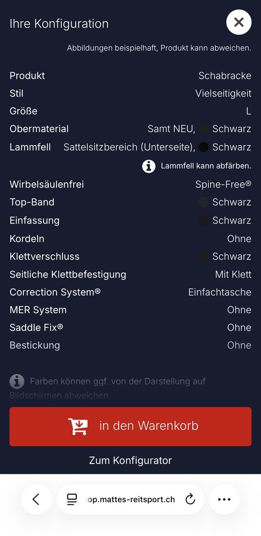 Mattes Vielseitigkeitsschabracke mit Correction System