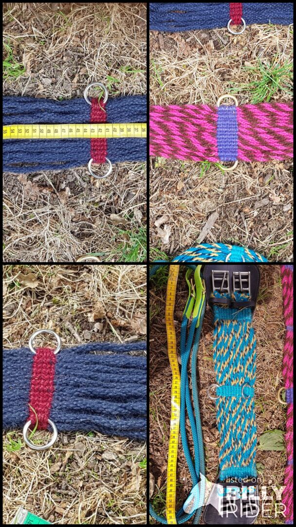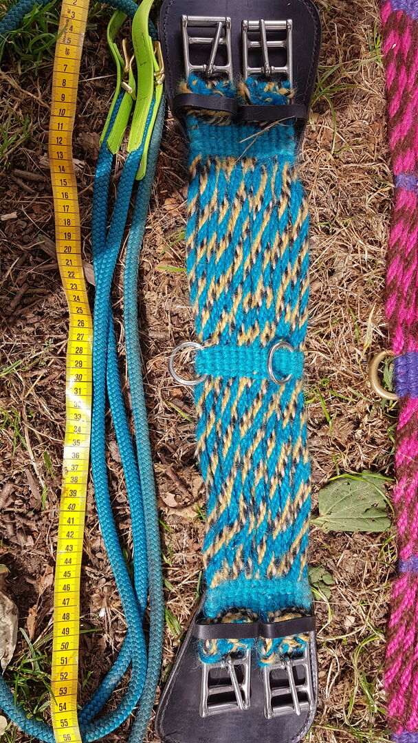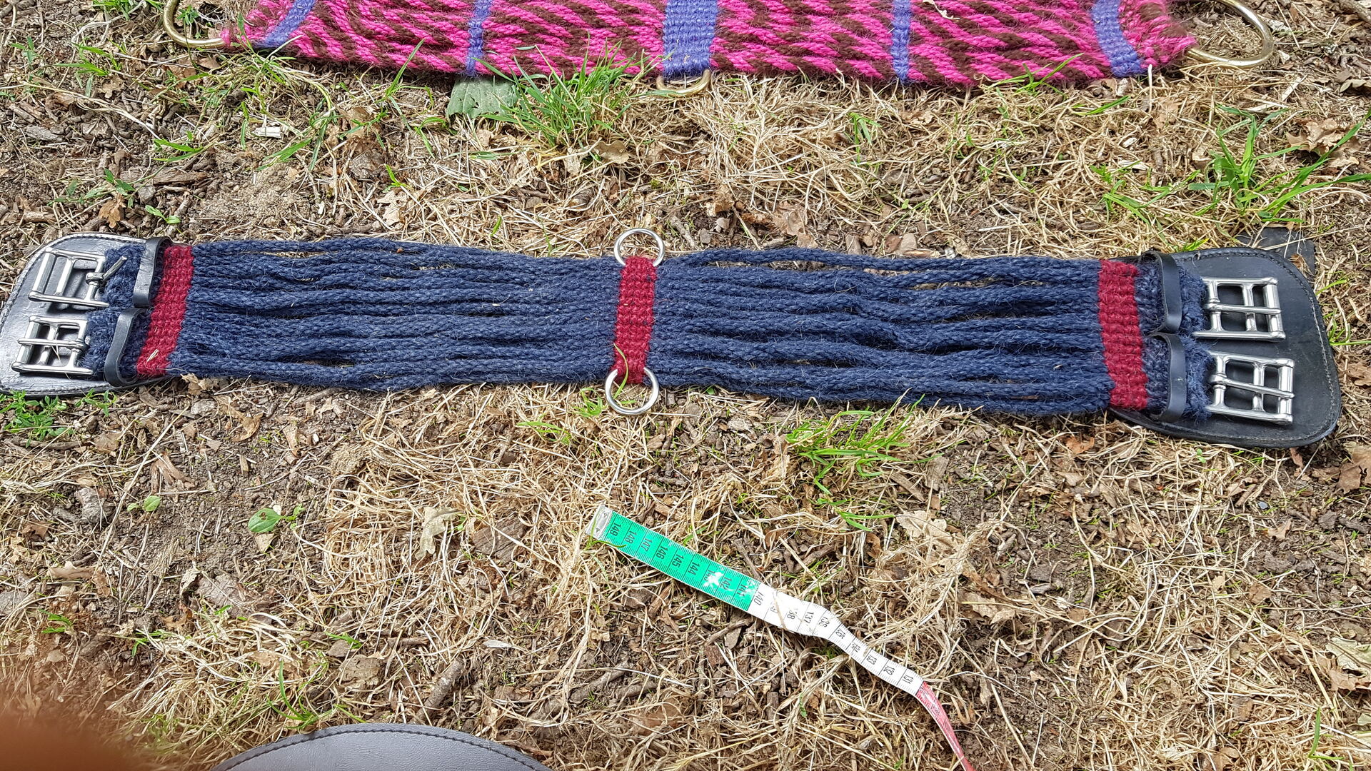 Mohair riding girths, in various sizes. All handcrafted (JD_customsproducts) and in very good condition. * dressing (turquoise): 55cm + leather protections + 65€ (as new) *classic (dark blue)84cm + leather protections * 80€ (as new) * for tie strap (pink): 80cm 55€