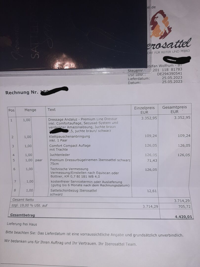 The invoice from iberosattel and the saddle passport is of course included and except for the 2 months still full warranty. Have me in this regard also at iberosattel reinsurance.