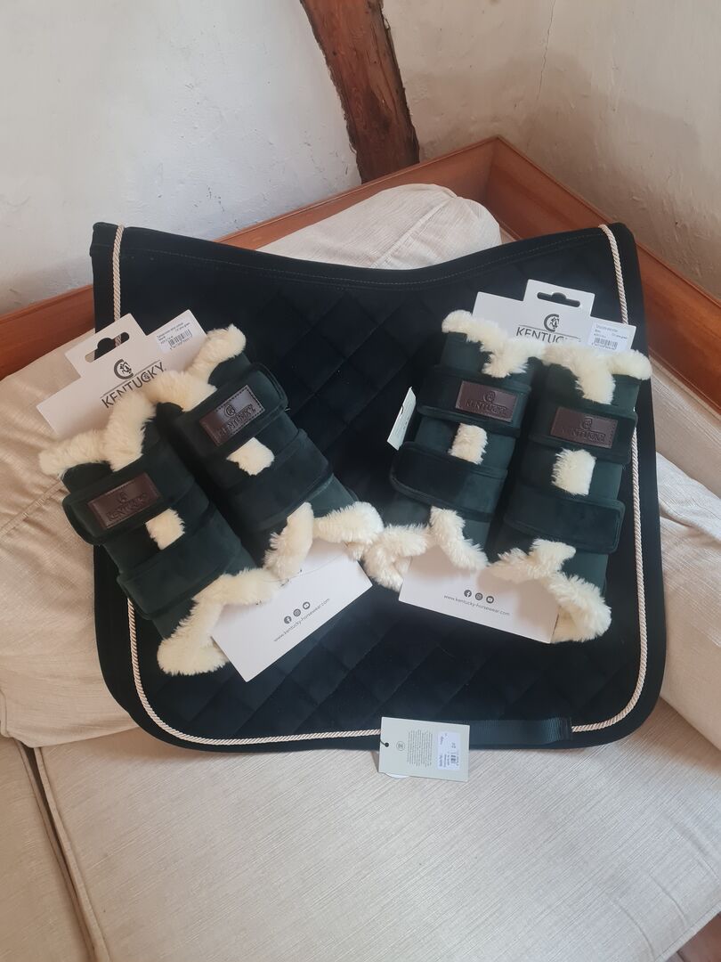 New Kentucky Set Velvet pine dark green gaiters (M+L) and saddle pad - Here I am selling my new, unused set consisting of saddle pad + gaiters M+L
