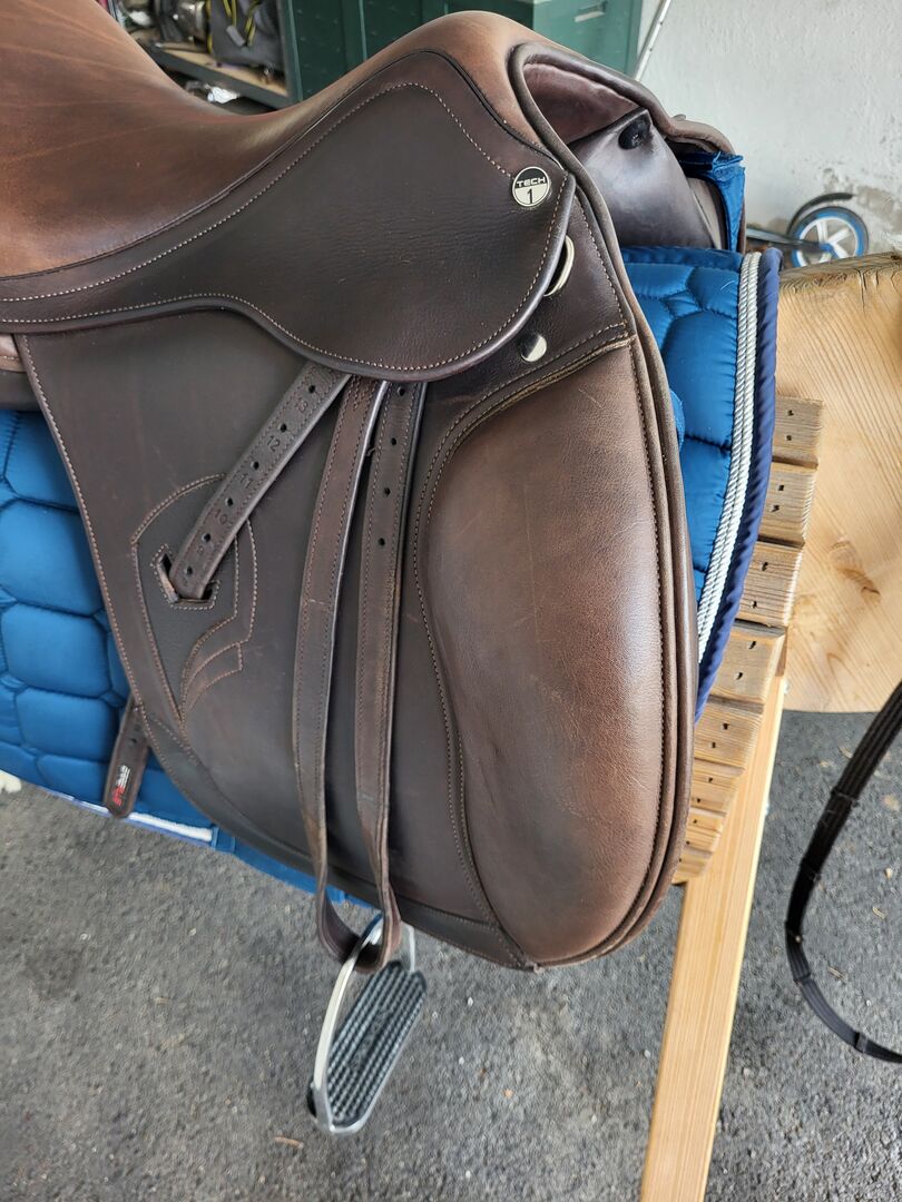 New Prestige Tech one VS saddle or KOMPLETTSET incl. straps, stirrups and girth!!! - Beautiful brown VS saddle Erre Plus Tech One, including stirrup leathers and girth. Adjustable knee rolls. Seat area 17.5" , chamber width 33 This set costs 2750 - new So strike now for only 2200! Test riding is possible.