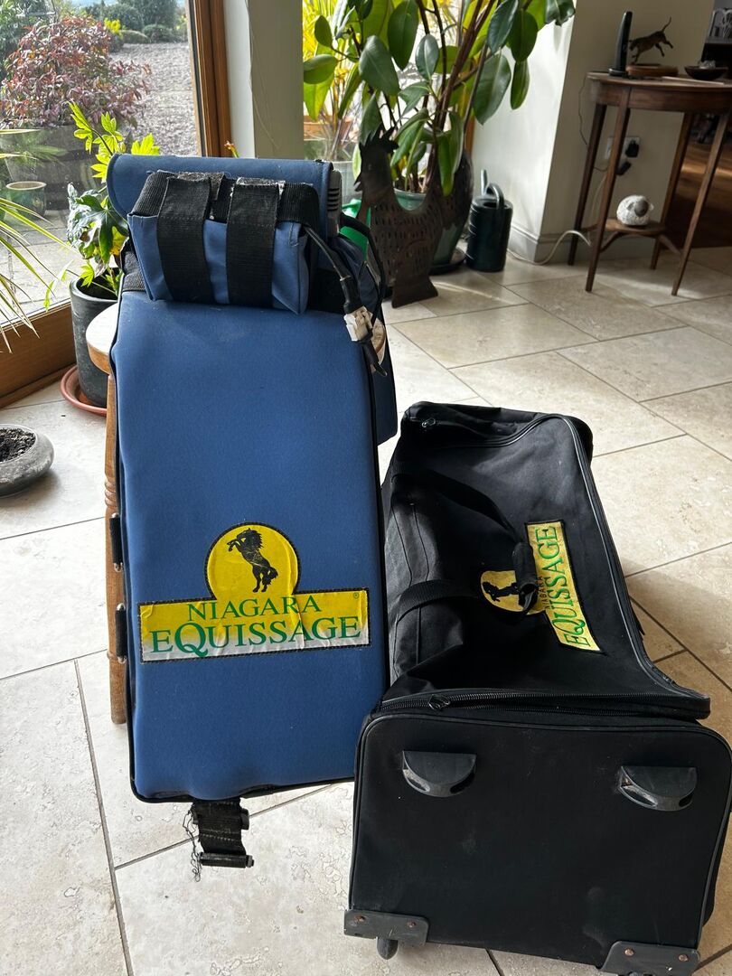 The well reknowned Equissage blue pad, used on a small yard, two small material tears as show in image, full working order, comes with a new battery. These wonderful massage belts are a huge asset to a horse, improving joint mobility and muscle relaxation, stimulating soft tissue whilst increasing blood flow. I noticed how it increased my horses' strides. Sadly no longer needed.