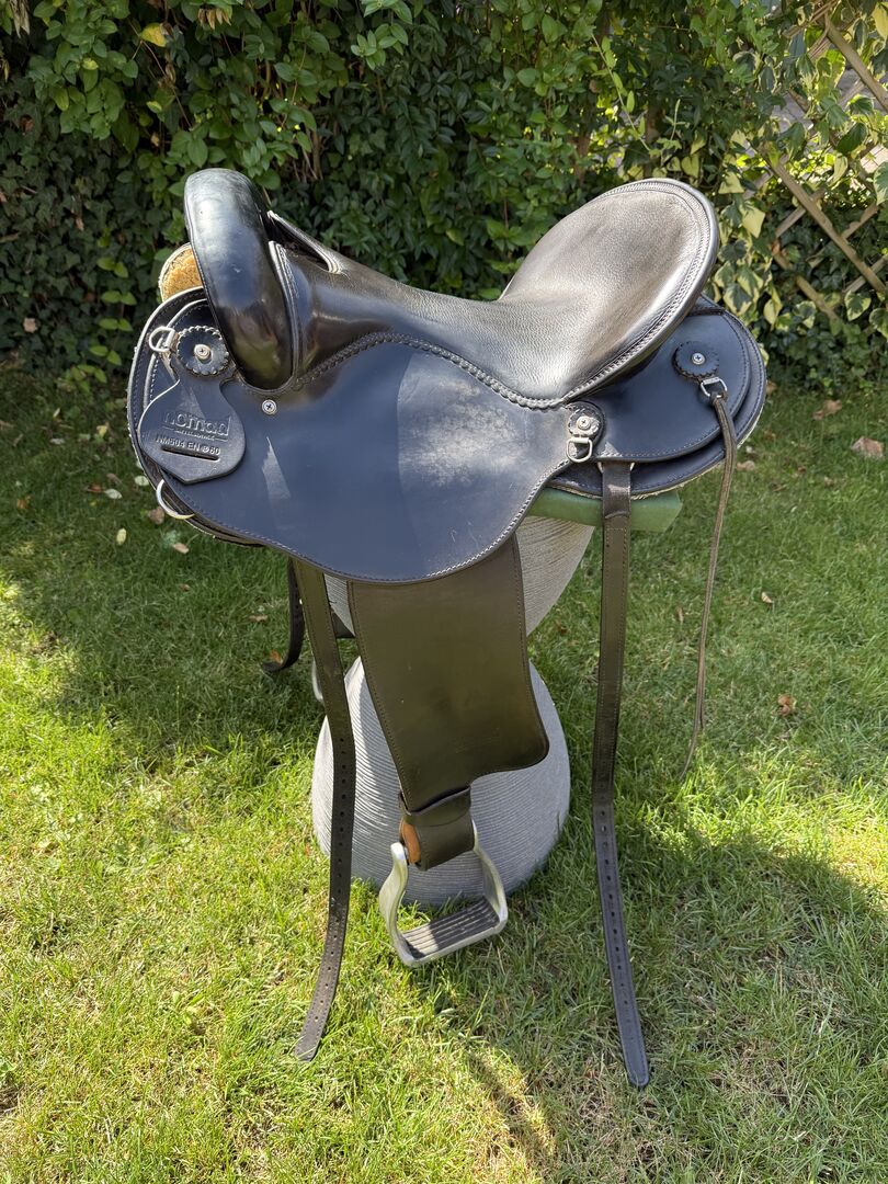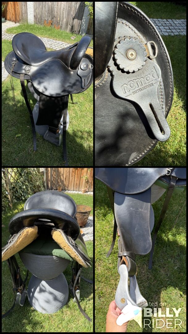 Nomad western/leisure/hiking saddle - I am offering a very well-maintained Nomad leisure saddle. It is made of beautiful thick black leather and was last used on my old Quarterhorse mare. As she is unfortunately no longer alive, I would like to part with her saddle. It was always used with a lambskin protector (see last picture) and the seat is therefore like new. Please contact me if you have any questions.