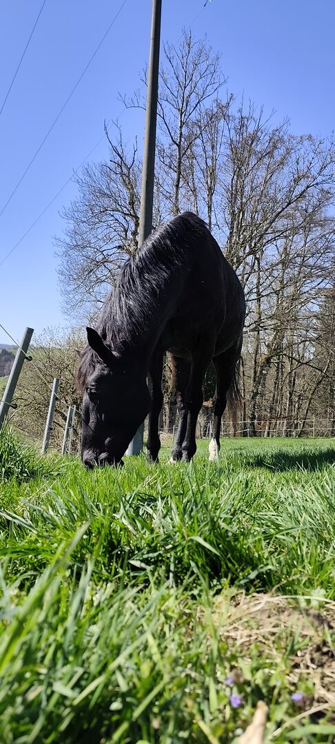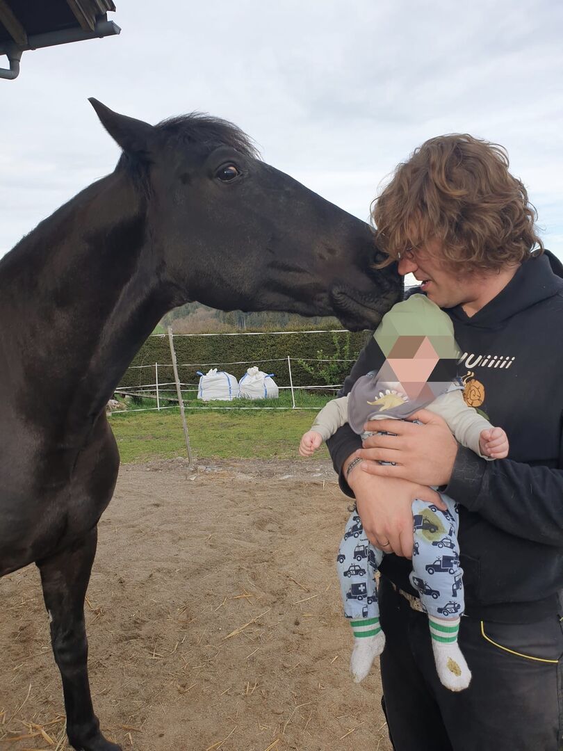 Nonius - Hungarian warmblood- 9yo - Due to family reasons, Cody is looking for his sweetheart. He is very people-oriented and is currently the highest-ranking horse in an open stable with two older geldings. He is ridden recreationally in all gaits in the field by various riders, but is not a beginner's horse. He knows dual activation and equikinetics, which we also do regularly in our small arena. He is barehoofed and walks on all surfaces without any problems, but was also shod by the previous owner. He is good with forging and loading and had his teeth done in April 25. He can be test ridden with us. (To prevent riding tourism for a fee of 20€) Videos on request No distress sale Location 87452 Altusried