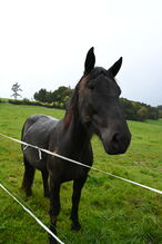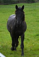 Noriker black mare - Just Magic is a beautiful 3.5 year old and friendly, affectionate Noriker black mare. She was born on 27.04.2022. She masters the young horse ABC very well. We have started breaking her in and she is relaxed and well-behaved. She is used to farm machinery and the usual rumbling on a farm with a riding school, we also have dogs and cats running around, cows, alpacs and farm machinery are also familiar to her. She also knows how to go off-road as a hand horse. Magic has a good gait and is generally an eye-catcher. I think she will be about 161-164cm tall. She is interesting for sport, leisure as well as for breeding. She is regularly wormed and chipped. Magic has full Zap paper and is PSSM1 free. She knows other farm animals and playing children.