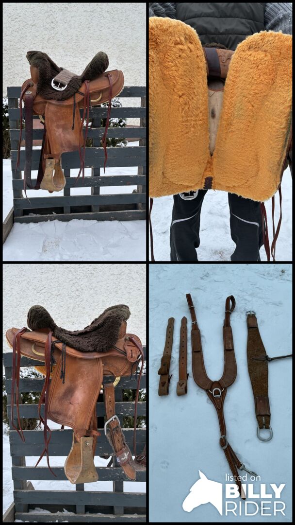 Old Time Vaquero western saddle - Western saddle in very good condition with back chinch and breastplate, unfortunately no longer fits my mare. Very easy to care for due to the raff out. Lambskin is not included in the purchase price