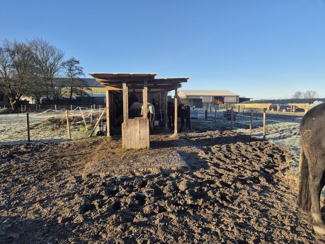 - Open stable boxes with self-watering troughs - the horses stay dry even in the rainy season - Blankets and mask service - Low-dust straw bedding over winter - coat, mane and hoof care once a week - concentrated feed/ individual feed once a day - The paddock is cleaned twice a day and the meadows are cleaned during the grazing season, - medical care/ administration of medication is ensured - hay and haylage are fed in the winter season - hay is fed for the night in summer - due to more feeding points than horses in the herd, feeding by rack (without net, loose hay) and additional hay nets is absolutely stress-free