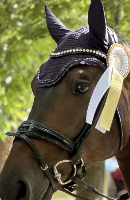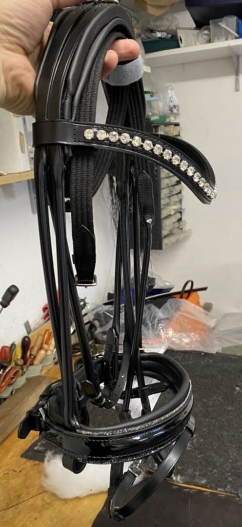 Otto Schumacher Snaffle "Feel Good" size WB - Selling my Otto Schumacher snaffle Feel Good, only used for 1 season. The browband is embellished with Swarovski stones in silver. The noseband with black padding and Fineline Crystel makes the bridle something special. The thick and soft chin pad offers optimum comfort for the horse. The headpiece of the bridle is softly padded and guarantees a super fit. NP 769€ Dressage possible at the buyer's expense.