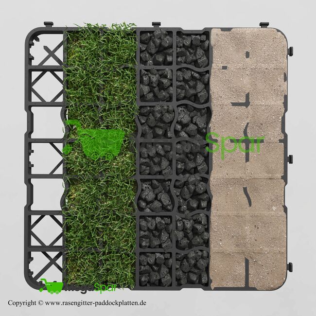 Rasengitter, Paddockplatten, Kunststoffmatten, Rasengitterplatten, Kunststoff-Rasengitter, Bodenplatten für Pferdestall, Paddockgitter, Paddockmatten, Stallmatten, Pferdematten, Kiesgitter