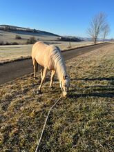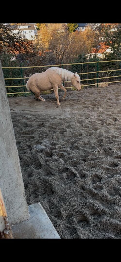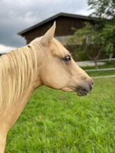 Palomino Quarter Horse mare with top-class reining pedigree - Location: 72547 Bad Ulrach A real eye-catcher with character, quality and future potential! With her palomino color, her compact, strong build and her very good muscling, Mobsters Trashya immediately attracts everyone's attention. The Quarter Horse mare, born on 18.04.2022, currently measures around 145 cm, is correctly built, healthy and convinces with a high-quality reining pedigree (HF Mobster x Gunnatrashya). The best prerequisites for a successful sporting future or a demanding leisure partner. Maggie has a loving, people-oriented and cuddly character. She is trusting, well-behaved and easy to handle on a daily basis, but needs clear rules and consistent, fair encouragement. As an intelligent young mare, she wants to be worked regularly and challenged both mentally and physically. Irregular work does not make her happy in the long term. Due to her age and level of training, she is therefore not a beginner's horse, but ideal for ambitious riders who enjoy training a talented young horse. The mare is lightly broken in and has already been ridden off-road several times. She is of course familiar with the vet and farrier. She currently lives in an open stable, knows herd management, is vaccinated and regularly wormed. Maggie is 6-panel n/n via her parents. With her good gaits, her motivation and her strong foundation, she has a lot of potential for show jumping. She is registered in the EWU young horse program. Dual registration (AQHA and APHA) is also possible. Whether as a future show horse or as a high-quality leisure partner with prospects - this youngster is a real promise for the future.