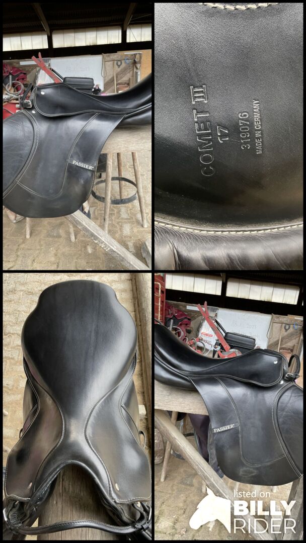 Passier Comet III in 17'' KW 27.5 cm - I bought this beautiful saddle second-hand myself, unfortunately I only rode it five times. The model impresses with a very short contact area and doubled leather. It is used, but very well cared for, apart from the usual signs of wear on the saddle flap from the stirrup leathers, no optical defects. Last re-upholstered 07/2022 by previous owner.