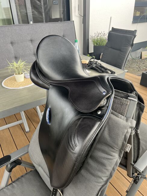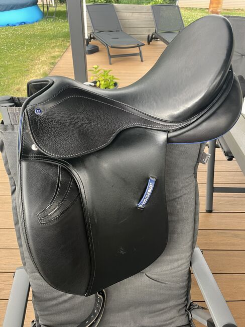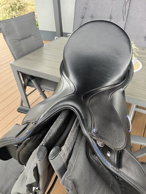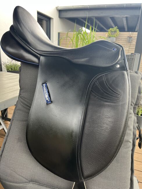 Passierblu Style Dressage Saddle 17 inch - The PASSIERBLU Style dressage saddle is a modern saddle made from high-quality European cowhide. It has a synthetic saddle tree, a deeper seat and high thigh rolls, which ensure an excellent seat feel.