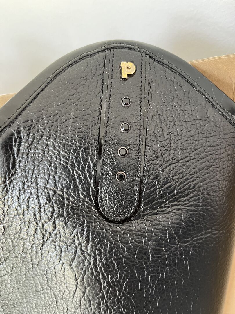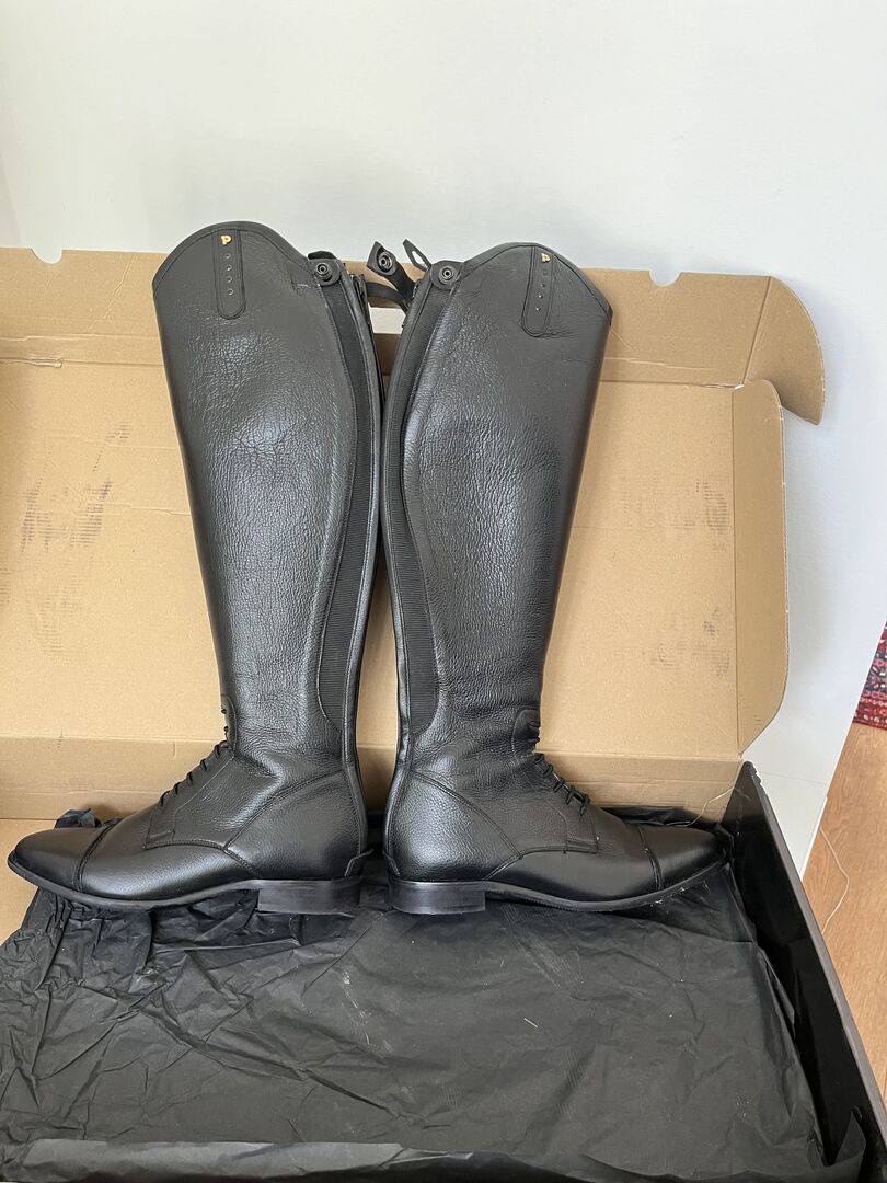 Petrie ladies riding boots grained leather - 1x worn black grained ladies riding boots in original packaging. Rubber sole, small patent piping on the instep. And on the upper shaft, black rhinestones on the light dressage bow