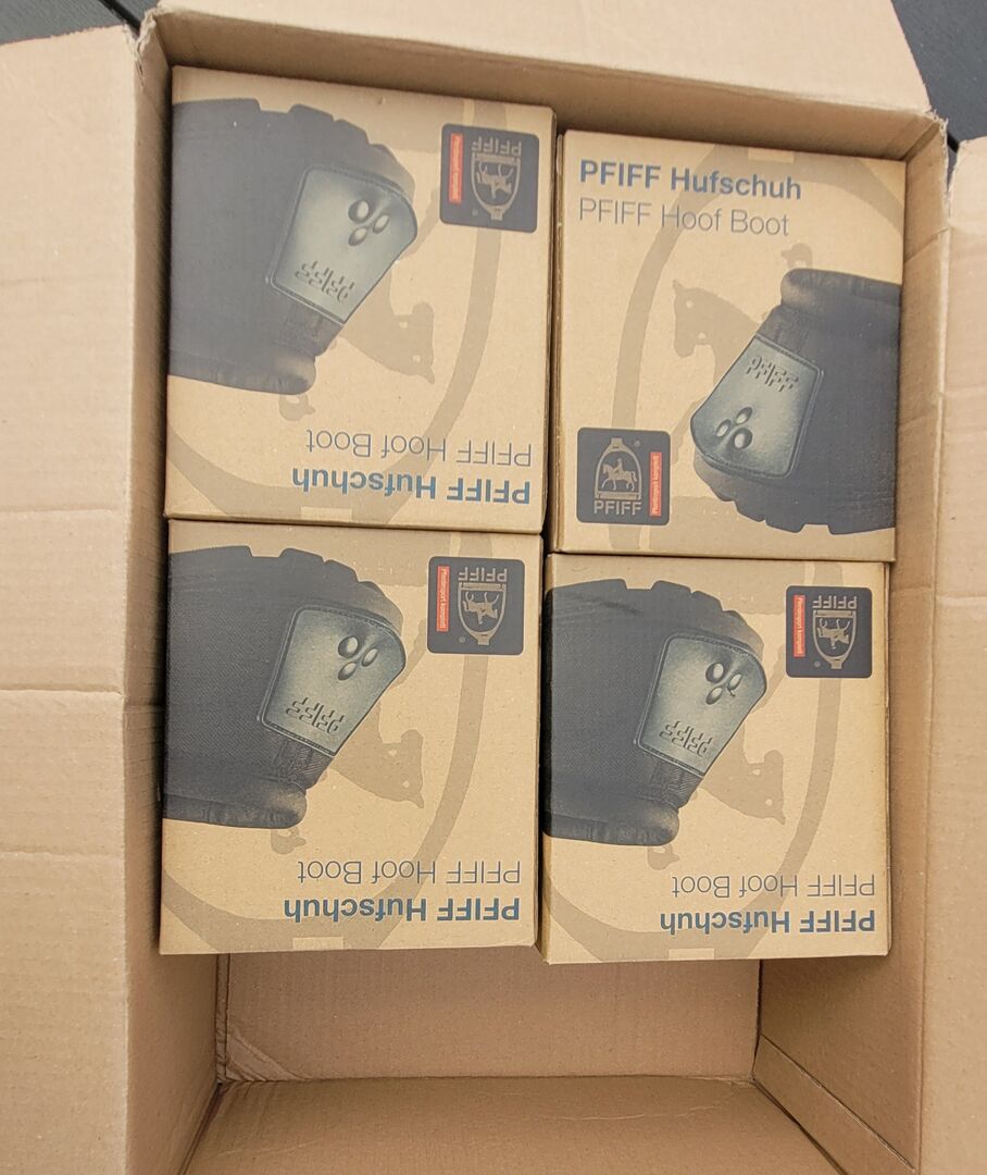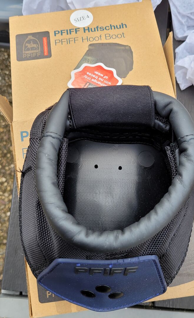 Pfiff hoof boots brand new size 4 - My partner wanted to do something good for our Icelandic horses, but clearly made a mistake with the size. That's why I'm offering the shoes as brand new. They have never been on the horse. There are 2 pairs available. Price is per pair and includes shipping