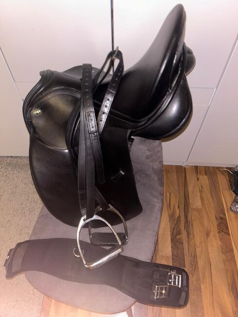 It comes with soft stirrup leathers from Waldhausen with stirrups and a short girth in moon shape 70cm with memory foam.