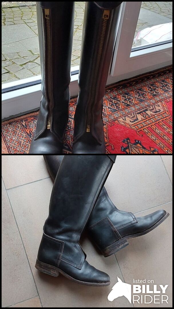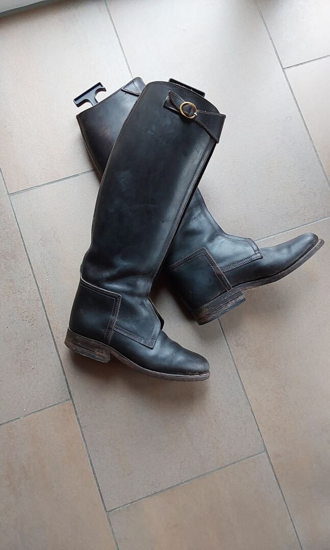 Polo riding boots ladies - Sturdy polo riding boots in dark brown. With sturdy, well-fitting zipper at the front and pretty buckles at the top of the shaft, little worn, in good condition. Outer shaft height 47 cm Inside shaft height 43 cm Calf circumference measured inside 31 cm