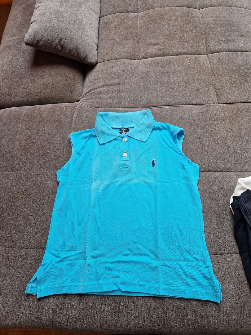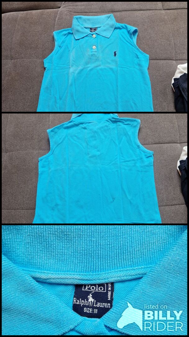 I sell a light blue polo shirt without sleeves. It has the size M. It is whole and freshly washed.