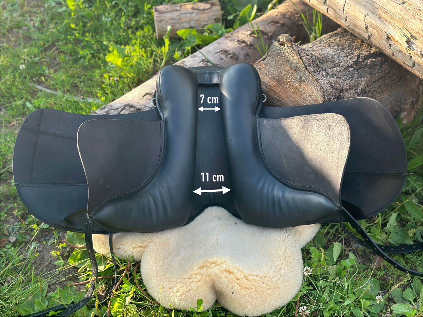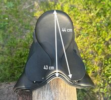 Pony saddle for adults - extra short - trial shipment - Icelandic Haflinger Tinker Welsh COB Fjord - Extra short pony saddle for adults - fits round pony types, straight back, low withers. 17" (up to size 40/42) - gullet approx. 40 cm (total length 42 cm) - KW 34 - wide spine channel (see photos for dimensions). Shipped on approval (insured with DHL tracking number).