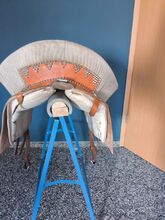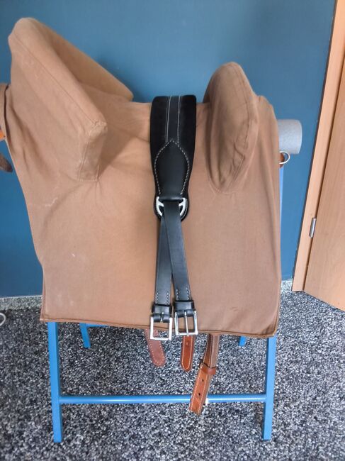 With Zalea in light brown, with stirrup leathers without stirrups,