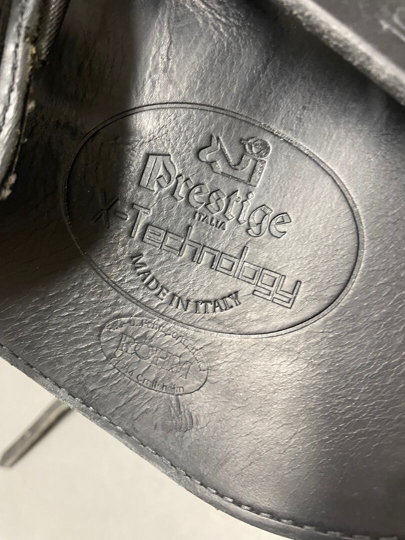 Prestige Dressage Saddle Helen X 17.5 flexible Velcro Thimbles - Sell here my Prestige dressage saddle Helen X 17.5. The saddle has been in use for about 2 years and is in great condition, very well maintained, no damage and always kept in heated dry tack room. It has flexible velcro thimbles and flexible girth straps and adjusts well. Comfortable to sit on like a sofa, also very good with shorter stirrups for cross country.