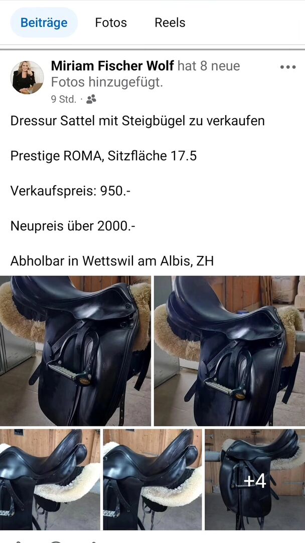 Hi Miriam Fischer Wolf, I am interested in your ad 'Prestige Dressursattel ROMA / Prestige'. Please contact me! 😀