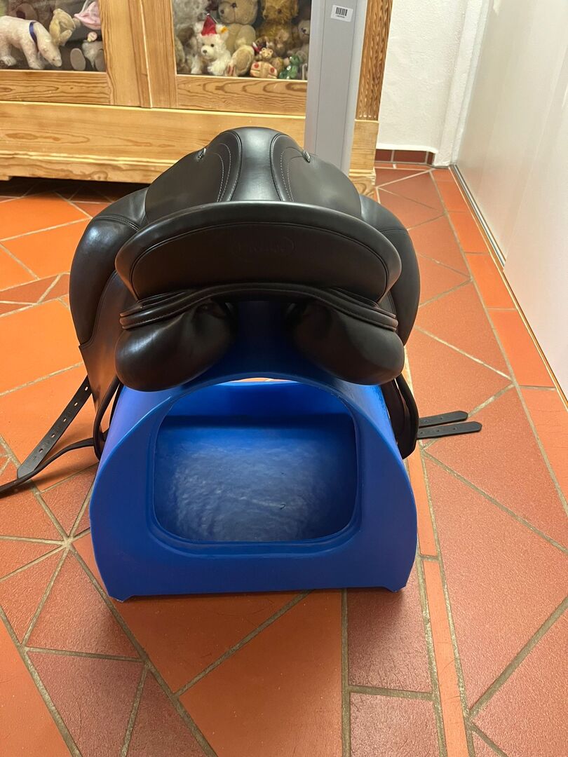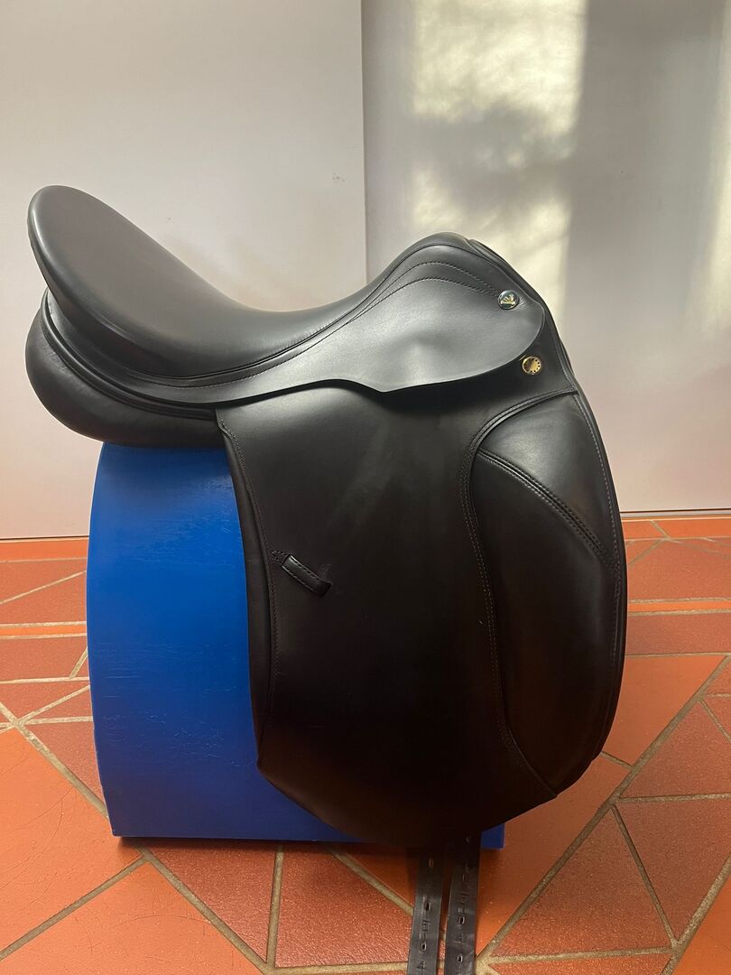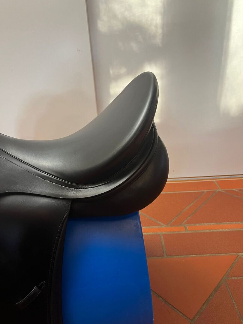Prestige Milano Dressage Saddle - I am offering a dressage saddle by Prestige "Milano" 17/32, with a contact area of approx. 48 cm. I bought the saddle myself from the saddler in 2019, but it has only been on the horse 30 times at most in that time, as I am unfortunately no longer able to ride my mare with a saddle due to her age. As a result, the saddle is in very good condition, there are slight signs of use, but due to good care they are very few and hardly visible. The saddle was regularly treated with Prestige saddle care and always stored in a dry place, which of course did it a lot of good. The saddle is super comfortable and you feel really at ease on the arena and off-road. More pictures are available on request!