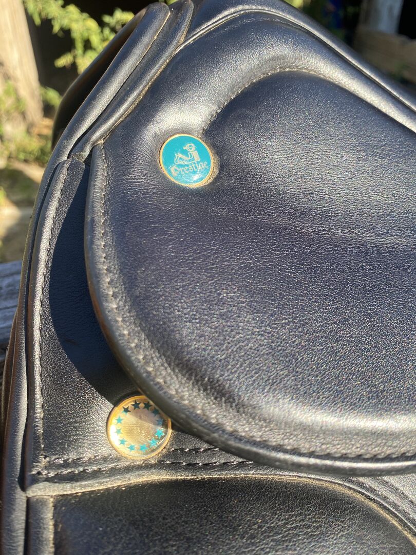 Prestige Pony Dressage Saddle Lucky Dressage Idol - I bought him last year new. He has laid until now about half a year on my 4 year old Haflinger. Unfortunately, he no longer fits. He is nice to sit and allows a good riding experience. He has slight signs of use, as the stirrup leathers have pushed through something. Nevertheless, he is well maintained and has no other damage.
