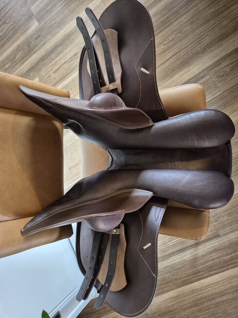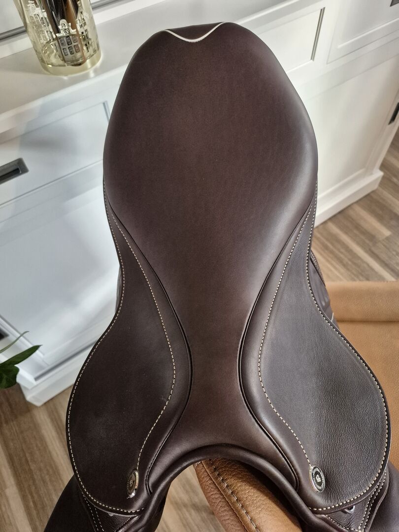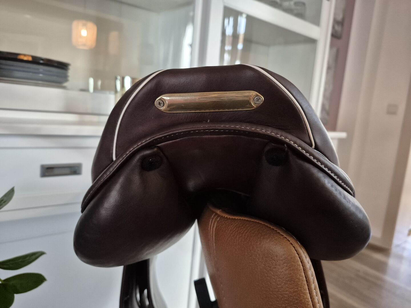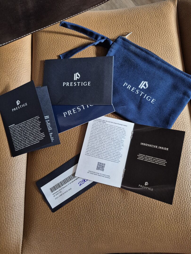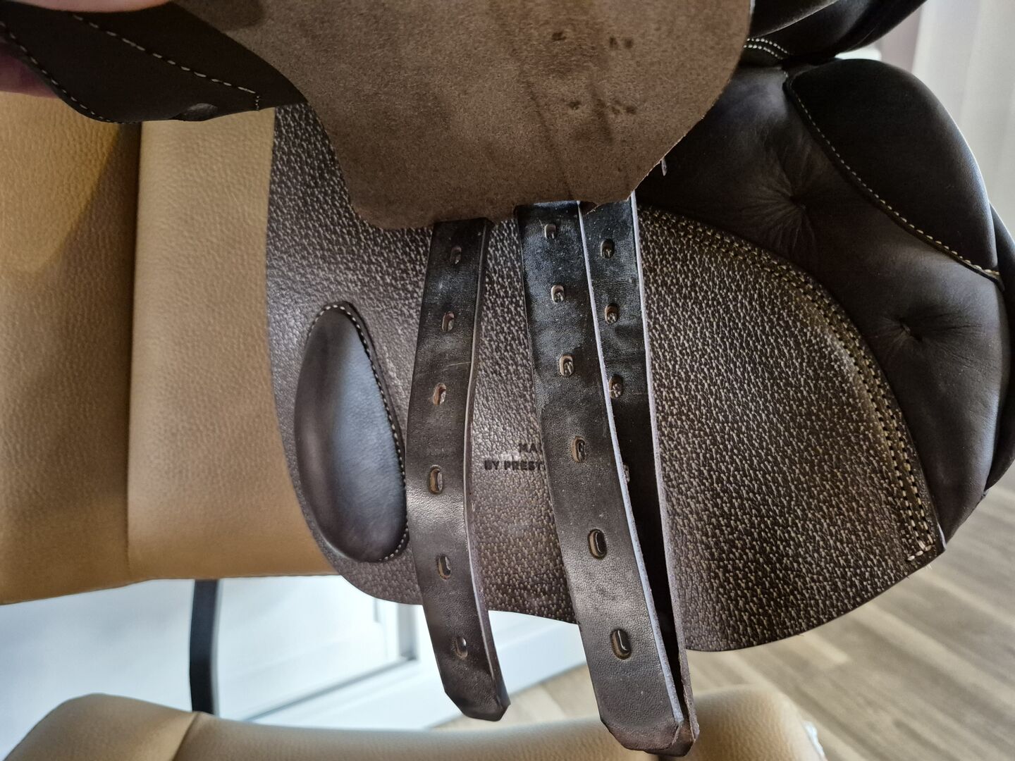 Prestige Versailles D jumping saddle Tabacco (almost new) - Beautiful Prestige Versailles D jumping saddle 17 inch, 34 chamber Color leather Tabacco brown Stitching beige Basically NEW!!! It was on the horse 3 times until the horse fell out due to injury. Since then I have stored it dry and heated in the house. All adjustments are in new condition / no changes have been made! Saddle number: 173402890624 From the number: Year of manufacture 06/24 Labels..., price tag available. Can be shipped in original Prestige box.