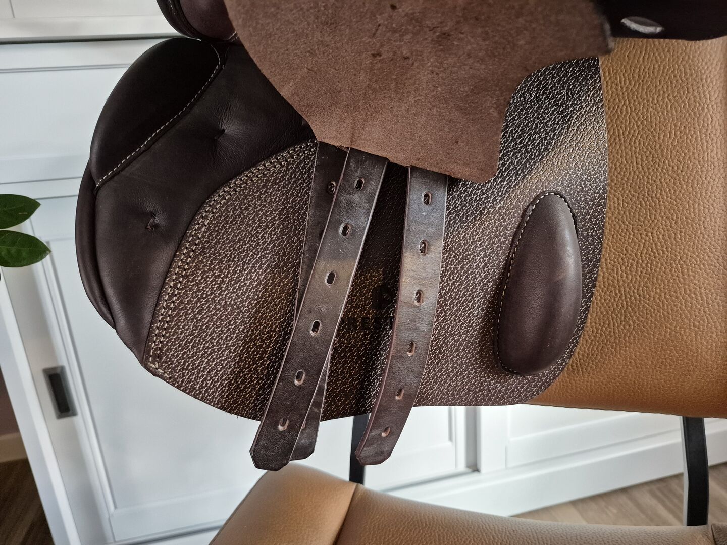 Accessories can also be sold: Leather girth, stirrup leathers in brown Also as good as new!