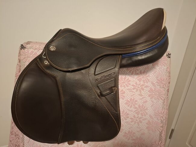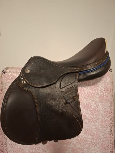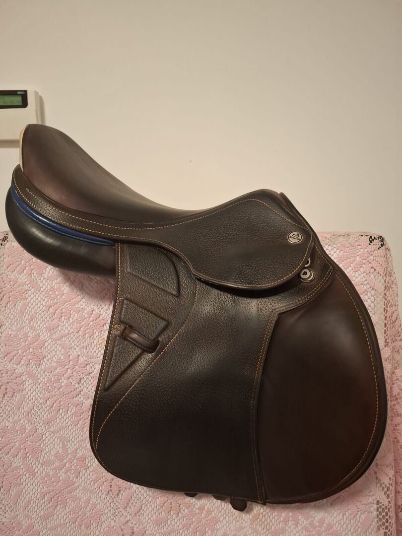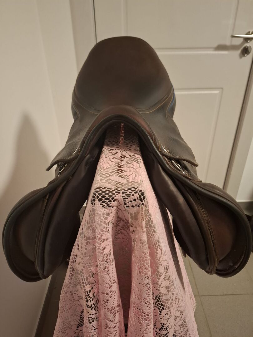 This brown premium jumping saddle has a new price of 4300 euros and is in excellent condition!