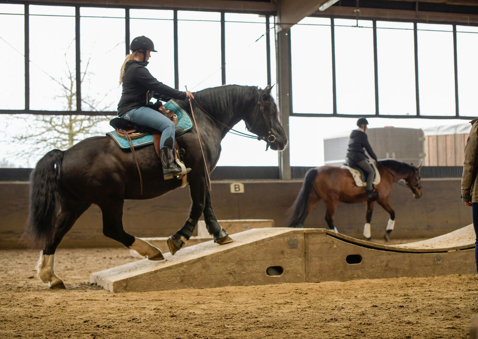 He prefers to go cross-country in a group, here he feels most comfortable, but he is also familiar with indoor and outdoor arenas.