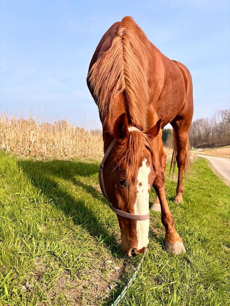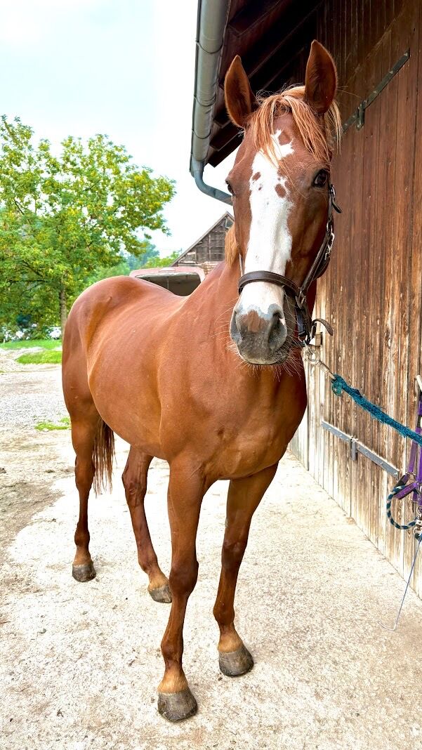 Pretty leisure gelding with jumping talent! - As we are now switching to a comfortable, older family horse for the children and myself, our athlete is looking for a new home with a heavy heart.