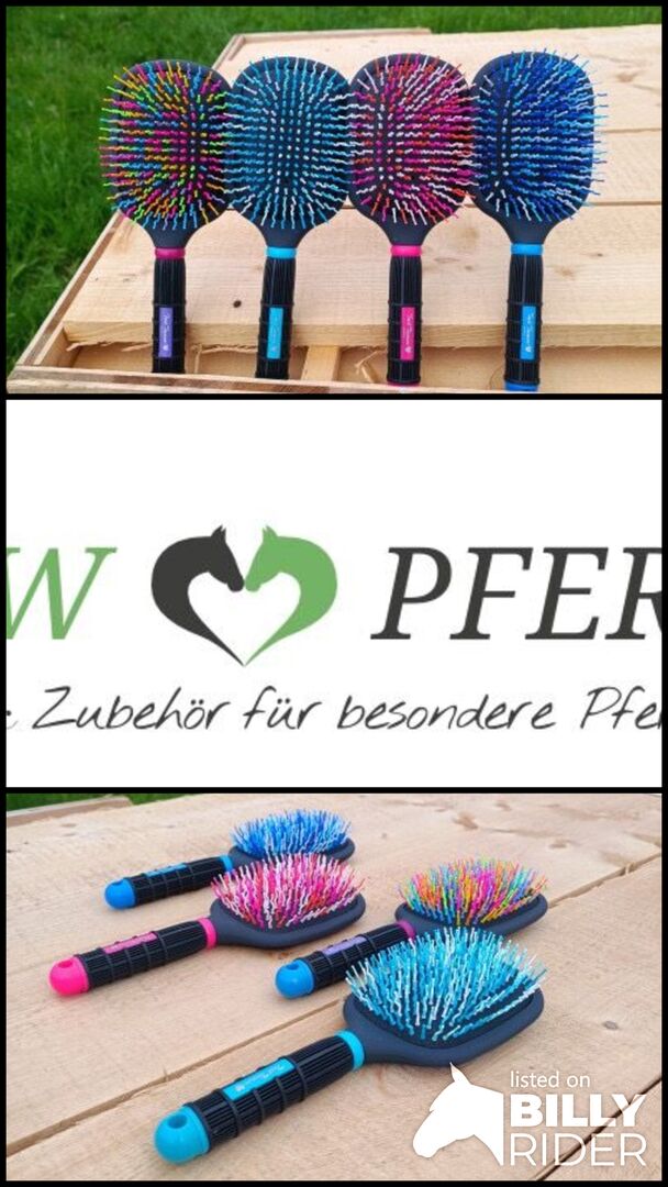 The brush has a very attractive design, fits perfectly in the hand and reduces hair loss thanks to the corrugated plastic head pins. It is particularly suitable for wavy horse hair so that the horse's hair remains supple and does not lose its shine.