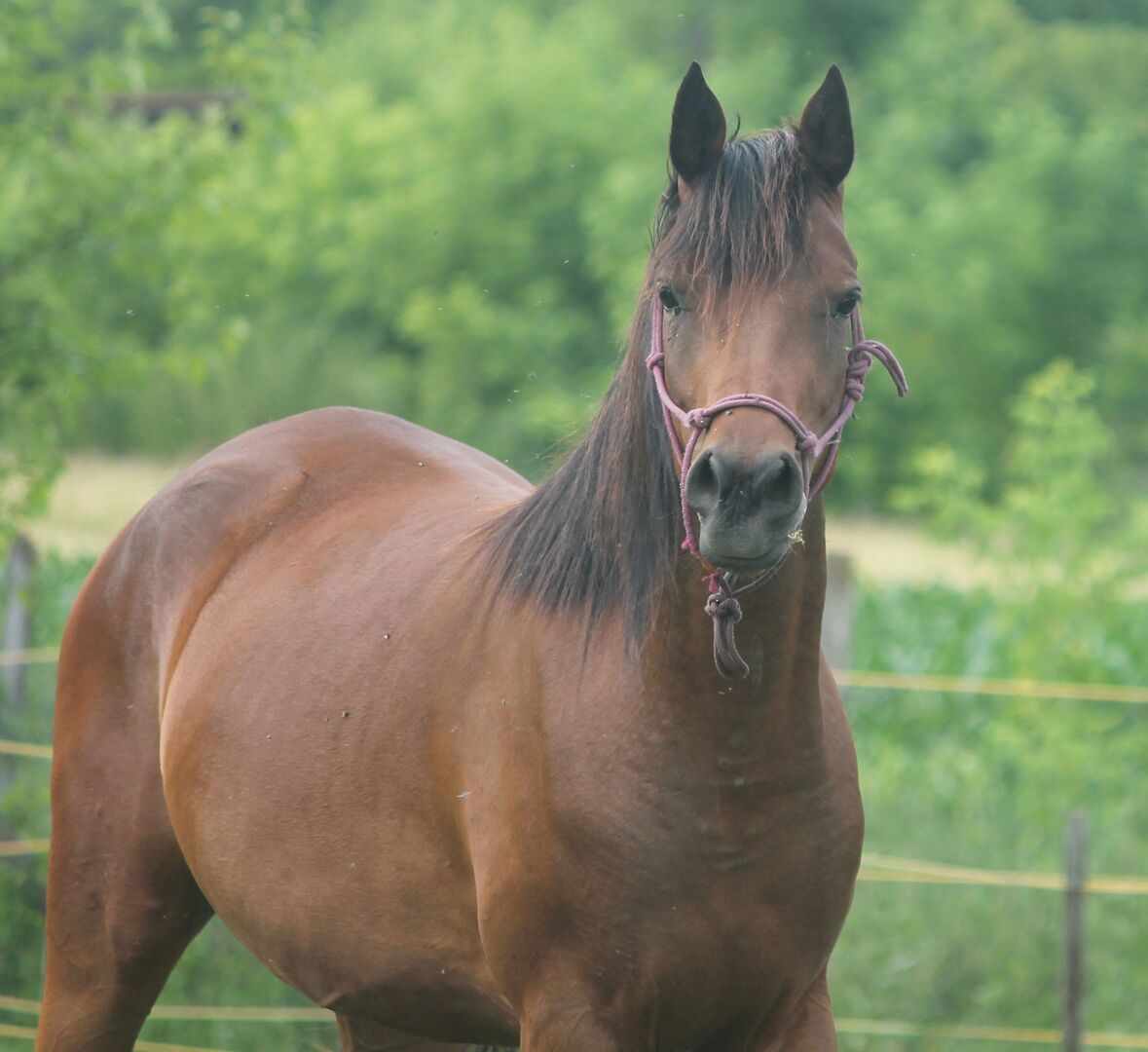Aïsha kommt zu Ihnen, wenn Sie sie rufen, läuft sauber am Halfter, sichert und bürstet und kratzt die Hufe aus, überhaupt kein Problem.