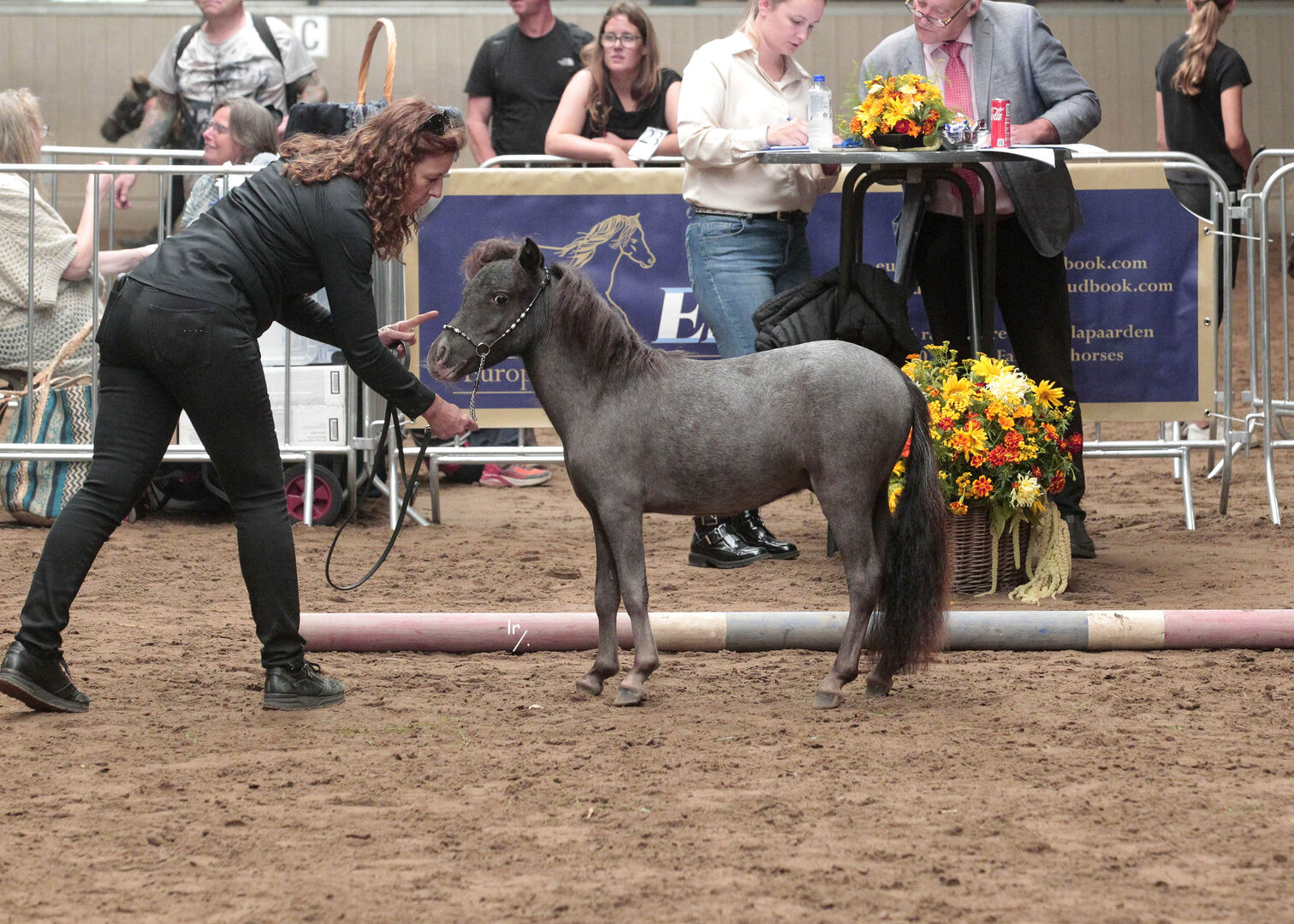 Due to downsizing of our breeding program due to health issues, we are offering for sale our purebred Falabella yearling colt Hooidonkhofs F. Antonio (stallion) - born 17 May 2024 - colour: black Appaloosa - Antonio took first place among the yearling stallions at the European Falabella Studbook inspection in August 2025 with 82 points (first prize/gold). He attracted a lot of attention because of his beautiful appearance, his excellent gaits and his small size.