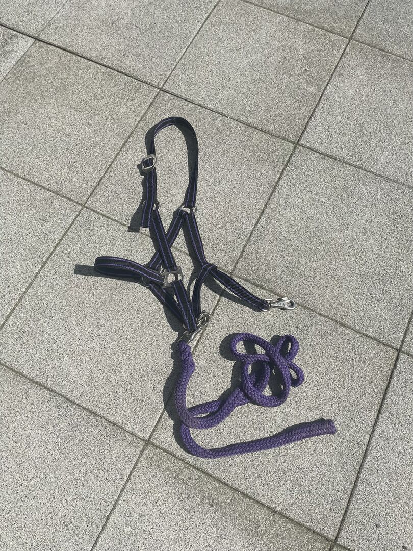 Halter with rope size Cob, has a few rust spots otherwise still in good condition