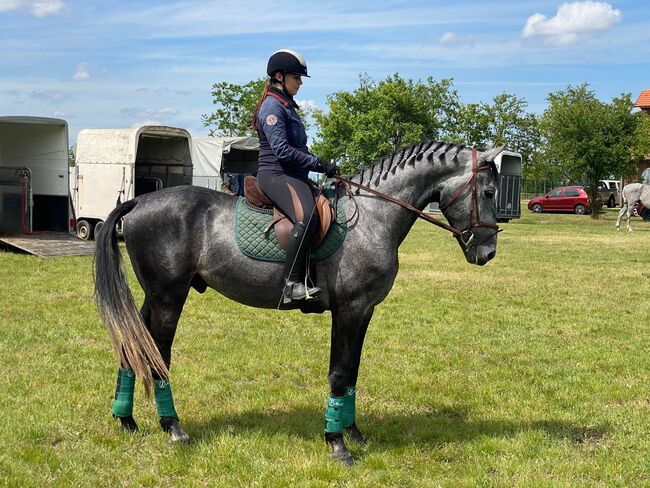 🏆Due to his elegant movement and appearance, I would primarily recommend him for dressage, but he would also excel as an all-around horse. I would confidently recommend him for advanced children who wish to compete, of course, under the supervision of a trainer or experienced rider due to his young age. He loves human company, is curious, and is free from bad habits. He has great potential and ability, making him an excellent competitor.
