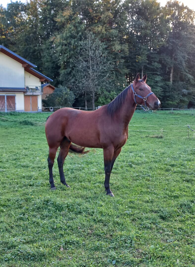 He is being sold as a side horse as he unfortunately goes lame gradually (sometimes more, sometimes less) and there is no clear diagnosis. He would be happy about ground work, walks, possibly small rides.... happy.