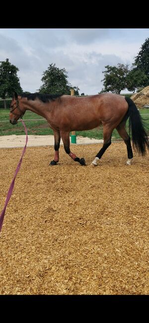 For sale is an almost 6-year-old Quarter Horse gelding (born 10.05.2020) in the eye-catching and special color Bay Roan - a real eye-catcher.