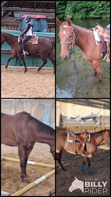 Quarter Horse mare with character and potential for cutting & ranch - Location: 85774 Unterföhring Joy Tee Rey is a beautiful Quarter Horse mare, born on 21.03.2021, with a height of approx. 153 cm. She is correctly built, well-balanced muscled and healthy, with eight x-rays from 2024. Resi is 6-panel n/n tested and regularly vaccinated and wormed. The mare lives in an open stable in a mixed herd, but also knows boxes with paddocks. Her character is sensitive, people-oriented and curious, yet rather quiet and somewhat lazy. She wants to be worked regularly, but needs the right amount of pressure when working, as she becomes tense if too much pressure is applied. Not suitable for beginners - ideal for experienced riders with young horse experience. Resi has solid basic western training, has been partially ridden and will be fully ridden from February. She knows cross-country, has been ridden in the field as a hand horse and under saddle. The mare has been worked a lot from the ground. Thanks to her very good cutting pedigree, she is ideally suited for cutting and ranch classes. Her sire is the successfully shown Titanium Toy, a Metallic Cat son. On her dam's side she is a Dual Rey granddaughter. With AQHA papers. Joy Tee Rey is the perfect horse for someone who wants to encourage and develop a young, challenging horse. She is available at an attractive price until 01.02.2026 for those who decide quickly.