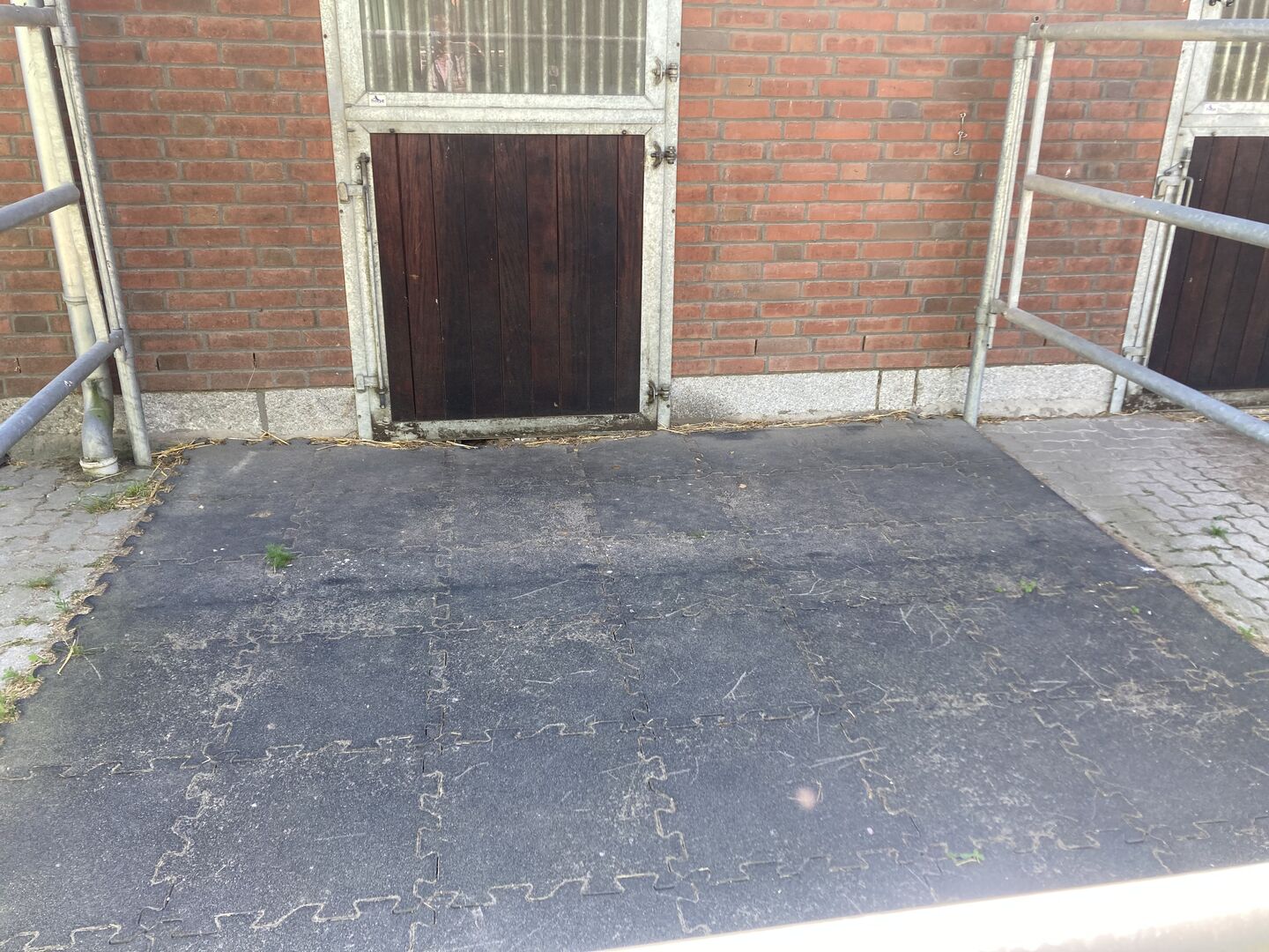Ridcon paddock/stable rubber square mats gray - used approx 14sqm - Rubber square mat gray (Ridcon). Stable mats for horses are made of fine water-permeable rubber granules. 50 x 50 cm. Are suitable for; stable alley, grooming area, washing area, solarium, concreted or paved paddock, boxes with slope and drainage possibility (with drainage channel). The mats have lain only approx. 1 year are used, but intact. No rubbed off places. They are very easy to install and can be varied and supplemented as desired.