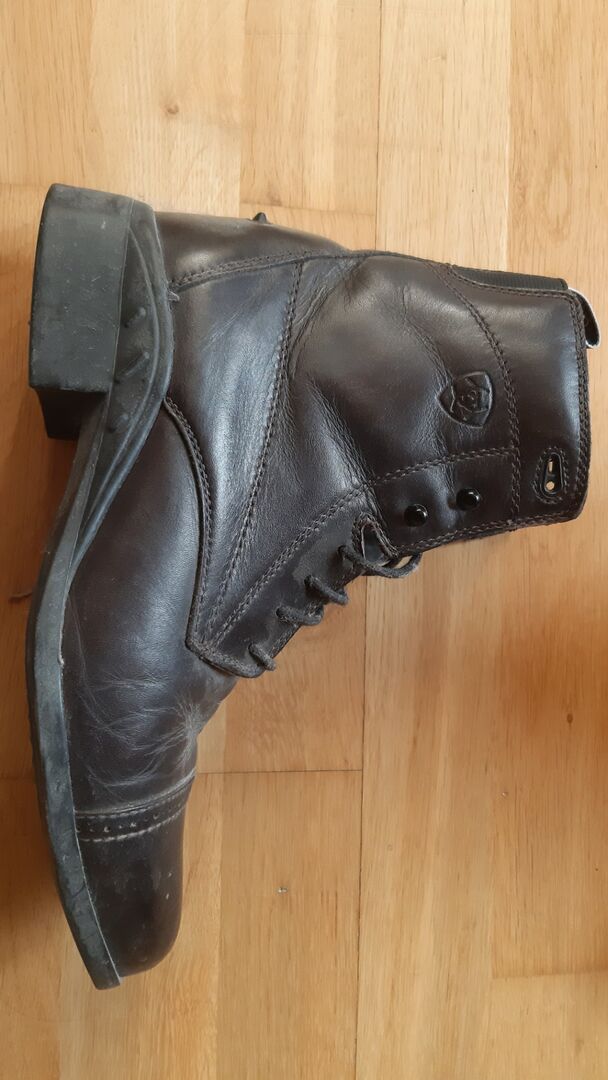 Riding boot - This comfortable full leather ankle boots I have worn only twice. The Ariat brand makes high quality shoes that have been produced with good leather. The non-slip sole is a trademark of Ariat and is practical when it rains or is slippery. NP 255sFr.