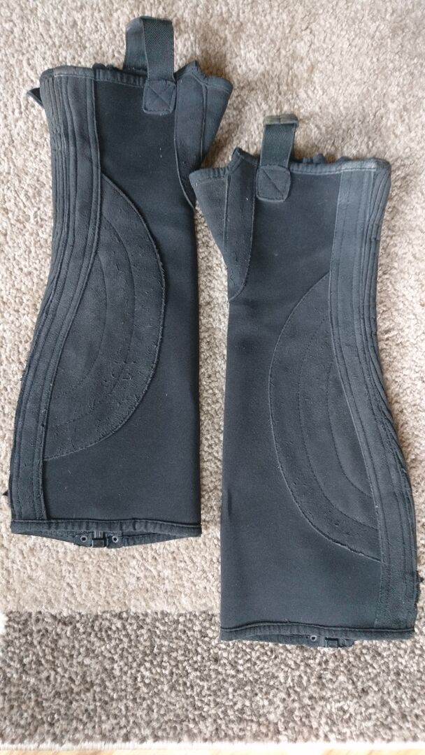 Riding chaps - Gaiters, M, Steeds - Unfortunately we have to give up our hobby with heavy hearts and for health reasons. Therefore we offer here chaps - gaiters in size M from Steeds. Elastic and super comfortable chap made of rubber. The anatomical fit provides a comfortable fit on the leg by elastic insert. Zippers, velcro and snaps are flawless. There are no holes, stains or other damage.